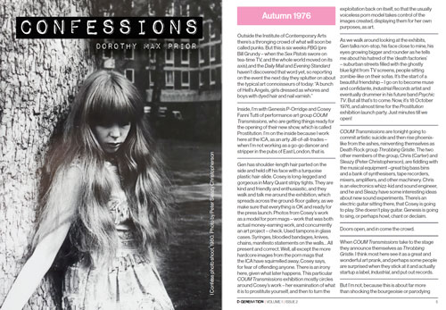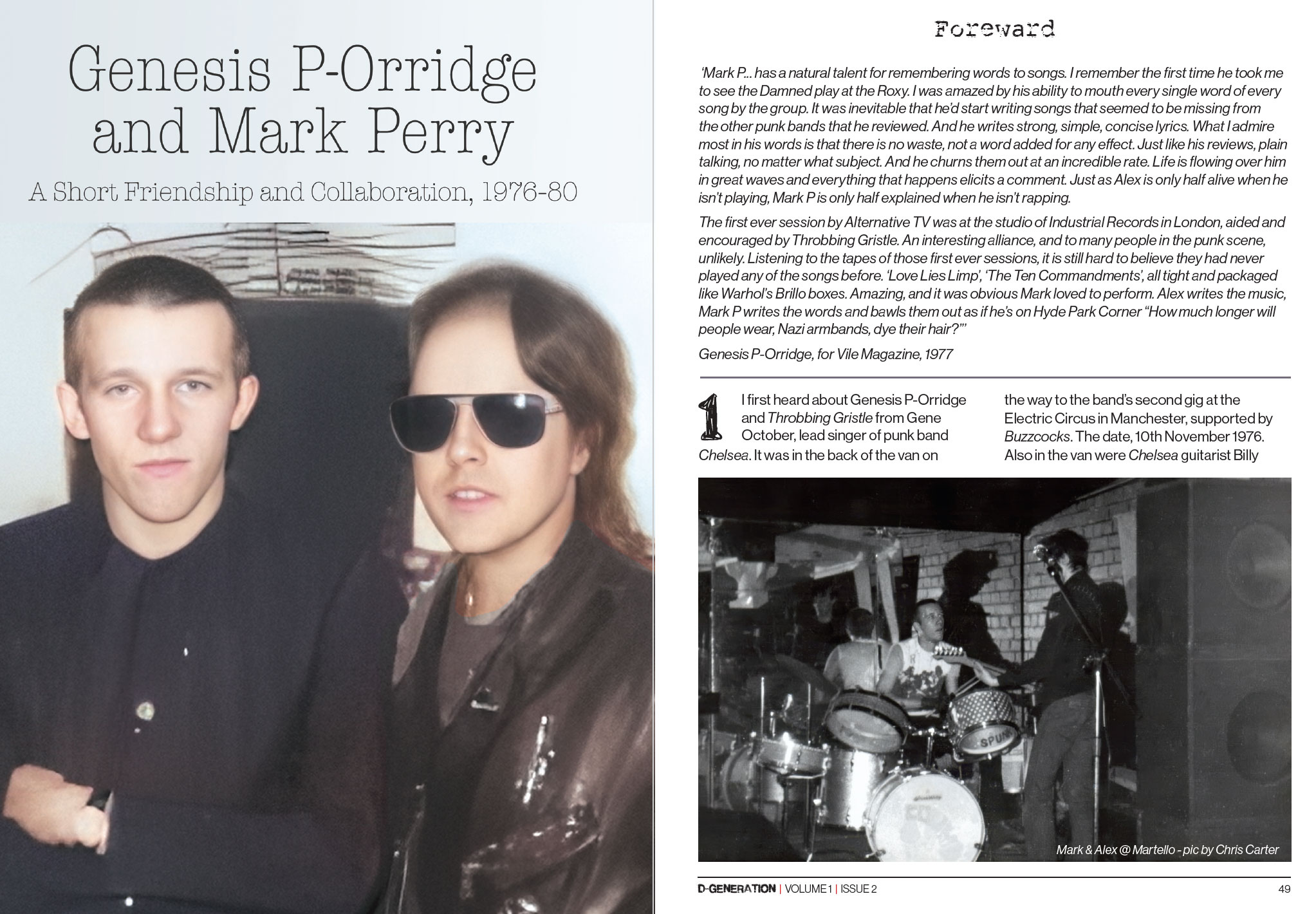 I first heard about Genesis P-Orridge and Throbbing Gristle from Gene October, lead singer of the punk band Chelsea.
